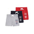 - Pack of 3 shorts in assorted colors: grey, navy blue, and red