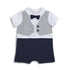 - Cotton jersey romper with striped yarn-dyed waistcoat in mélange linen blend fabric