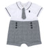 - Romper with top in cotton poplin and bottom in Prince of Wales patterned cotton blend fabric